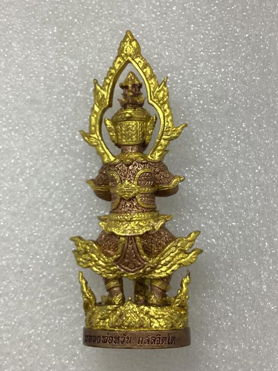 ท้าวเวสสุวรรณ รุ่นคลังสมบัติ รุ่น2 หลวงพ่อหวั่น วัดคลองคูณ จ.พิจิตร สูง 6.5 ซ.ม. เนื้อทองแดงรมมันปูทาทองเครื่องทรง กล่องเดิม |
