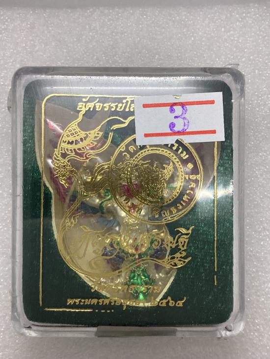 พญาครุฑทรงมหิธานุภาพ เชิญธงเศรษฐี วัดครุฑธาราม จ.พระนครศรีอยุธยา พิมพ์ใหญ่ สูง 4.5 ซ.ม. เนื้อตริยะโลหะ (สัมฤทธิ์ผล) ชุบ 2 K ลงยาราชาวดี ซีลเดิมยังไม่ได้แกะ
