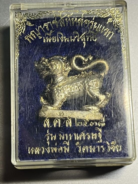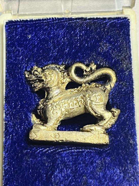 พญาราชสีห์หล่อรุ่นแรก หลวงพ่อมี วัดมารวิชัย เนื้อเงิน พร้อมกล่องเดิม