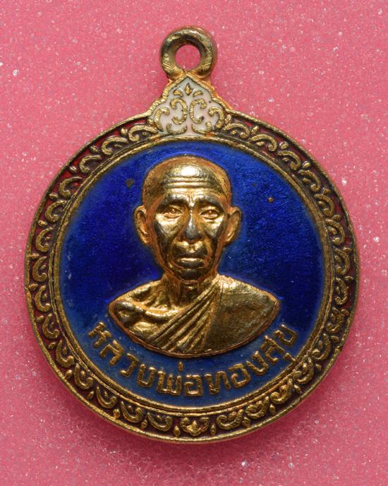 @>>เหรียญกลมหลวงพ่อทองสุข วัดสะพานสูง ลูกเสือชาวบ้าน กะไหล่ทอง ลงยาสีธงชาติ ปี 2520