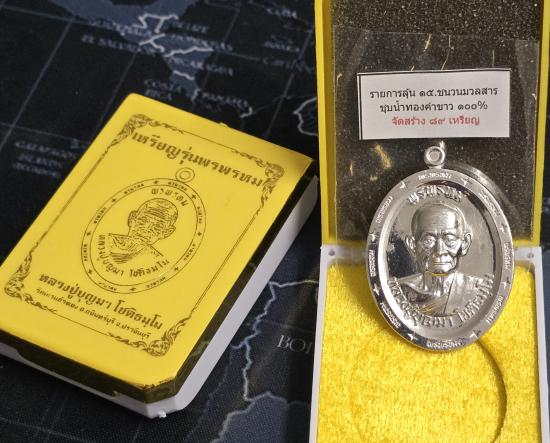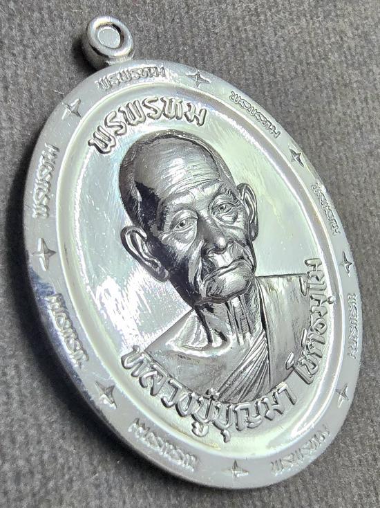 ชื่อพระเครื่อง รวยพันล้าน" หลวงปู่บูญมา โชติธัมโม เนื้อชนวนมวลสารชุบน้ำทองคำขาว 100% ฝังเพชรสังฆาฏิ