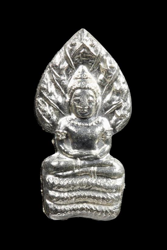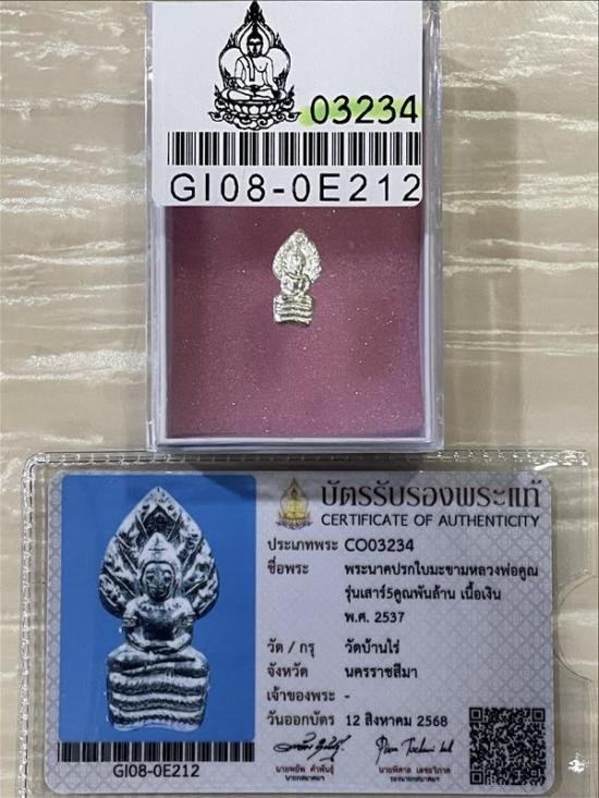 (เคาะแดง1900) +บัตรสมาคม นาคปรกใบมะขาม หลวงพ่อคูณ วัดบ้านไร่ เนื้อเงิน