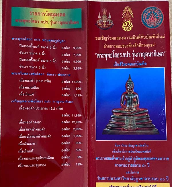 พระพุทธโสธร ภปร กาญจนาภิเษก 40 ปี ม.บูรพา ปี 39 เนื้อไททาเนียม ชุด ุ6 องค์