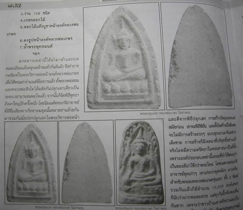 พระเก่าผิวแห้งเก่าได้อายุตามธรรมชาติ ส่องดูแล้วเพลินโดยเฉพาะด้านหน้าคลาสสิคมากๆ พระผงรุ่นแรก หลวงพ่อเกษร พิมพ์นี้แทบจะกลายเป็นตำนานแล้วครับ นักสะสมรุ่นใหม่ทั่วไปรู้จักน้อย ส่วนใหญ่จะรู้แต่พระเหรียญหรือกริ่งหลวงพ่อเกษร พระเครื่องเนื้อผง หลวงพ่อเกษร สร้างรุ่นแรกเมื่อปี 2497 โดยวัดตอนนั้นจัดพุทธาภิเษกใหญ่ในโบสถ์หลวงพ่อเกษร สำหรับพระเกจิดังๆที่ทราบว่ามาแน่นอนคือ หลวงพ่อโชติ วัดตะโน หลวงพ่อเงิน วัดดอนยายหอม หลวงพ่อน้อย วัดธรรมศาลา หลวงปู่โต๊ะ วัดประดู่ฉิมพลี เป็นต้น