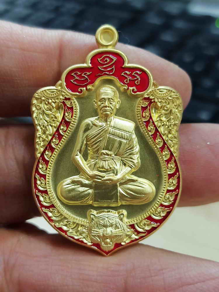 วัดใจ 100 เหรียญเสมาเสือคาบแก้ว 7 รอบ หลวงปู่บุญมา สำนักสงฆ์เขาแก้วทอง จ.ปราจีนบุรี 2567 ชุบทองโบราณ ลงยาขอบแดง หมายเลข 34 สร้าง 169 กล่องเดิม |