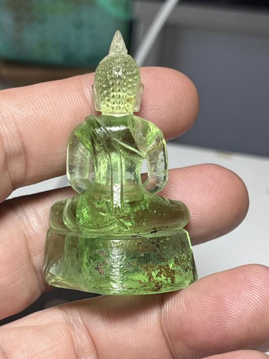 วัดใจเคาะแรก พระบูชาเนื้อแก้วเขียวไม่ทราบที่เก่ามีอายุ ขนาดหน้าตัก 3 เซนติเมตรสูงถึงปลายเกศ 5.5 เซนติเมตรพระบ้านบ้านสวยตามภาพครับ |
