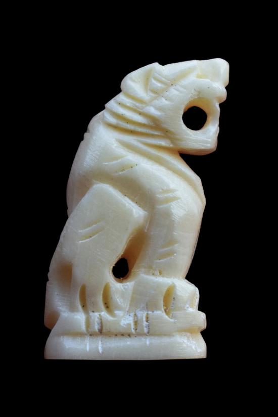 พญาเสือเจ้าพยัคฆ์ตัวจ่าฝูง (มหาอำนาจ มหาปราบ) เนื้อกระดูกแกะ ใต้ฐานหลวงปู่จารยันต์กำกับไว้ทุกตัว สร้าง 189 ตัว ปี 2551 หลวงปู่เฉลิม วัดบุญนาคประชาสรรค์ จ.สมุทรสงคราม พร้อมซองรูปใบฝอยเดิมจากวัด สภาพพระตามรูปที่ลงทุกประการ (ขนาดประมาณ 2.4 x 1.2 ซม.)