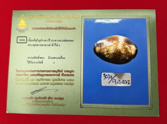 เบี้ยแก้ รุ่นสุริยุปราคา ตะกรุดเงิน หลวงพ่อเกษม เขมโก ปี 2538 ติดรางวัลที่ 3 งานประกวดสมาคมพุทธมณฑล