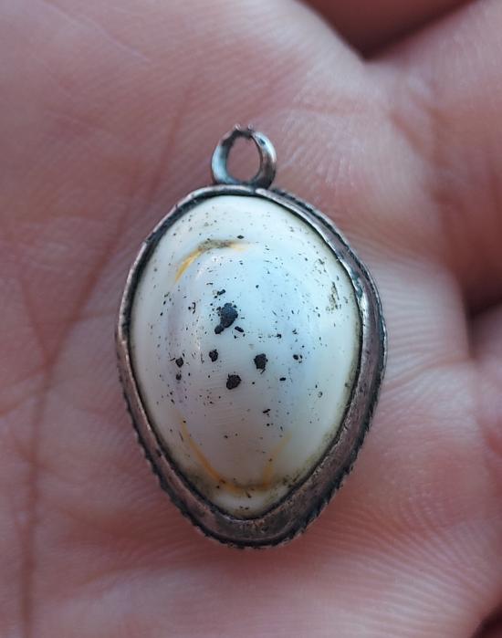 เบี้ยจั่นเลี่ยมเงินเก่าสายอ่างทองน่าใช้