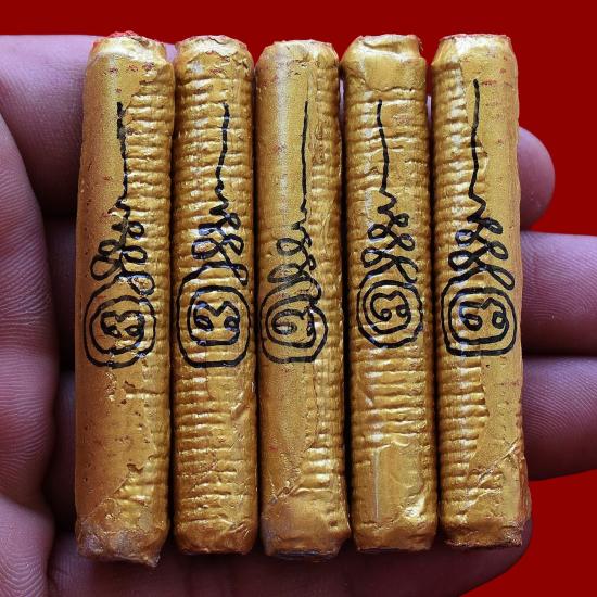 ชุด 5 ดอก...ตะกรุดมนต์สาวหลง (ดอกสีทองจารยันต์) ปี 2557 หลวงปู่สิงห์ วัดบ้านป่าตะแบง จ.นครราชสีมา พร้อมซองรูปจากวัด