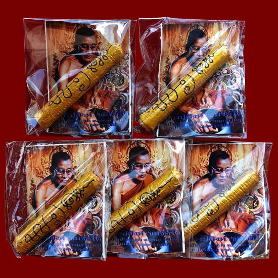 ชุด 5 ดอก...ตะกรุดมนต์สาวหลง (ดอกสีทองจารยันต์) ปี 2557 หลวงปู่สิงห์ วัดบ้านป่าตะแบง จ.นครราชสีมา พร้อมซองรูปจากวัด สภาพพระตามรูปทุกประการ (ขนาดยาว 2.5 นิ้ว)