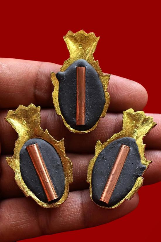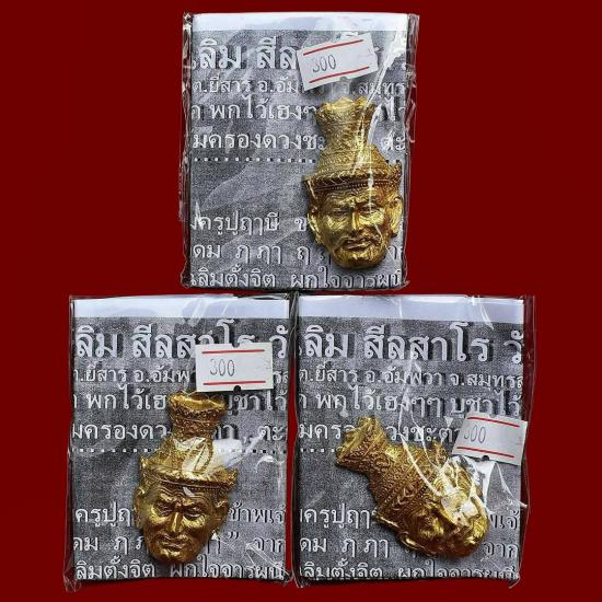 ชุด 3 องค์...เศียรปู่ดวงดีทวีโชค เนื้อทองเหลือง ด้านหลังฝังตะกรุดอุดผงมวลสาร ปี 2558 หลวงปู่เฉลิม วัดบุญนาคประชาสรรค์ จ.สมุทรสงคราม พร้อมใบฝอยเดิมจากวัด