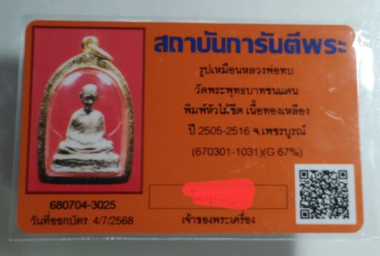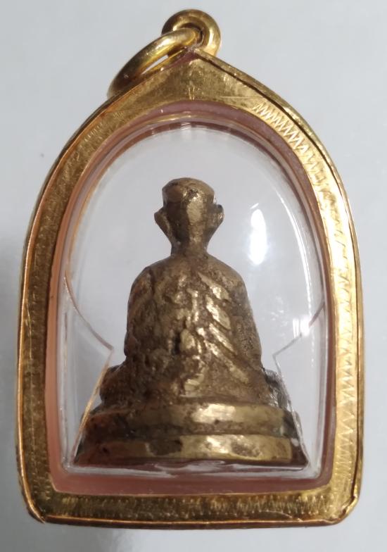 รูปหล่อหลวงพ่อทบ วัดชนแดน พิมพ์หัวไม้ขีด เนื้อทองเหลือง เลี่ยมทองพร้อมบัตร