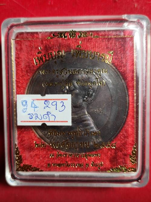 รุ่นแรกเหรียญบาทน้ำมนต์ หลวงปู่จื่อ พันธมุตโต รุ่น เพิ่มบุญเพิ่มบารมี ออกวัดเขาตาเงาะอุดมพร จ.ชัยภูมิ ปี 58 เนื้อ ทองแดงรมดำ หมายเลข 293 เคาะเดียวแดง