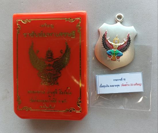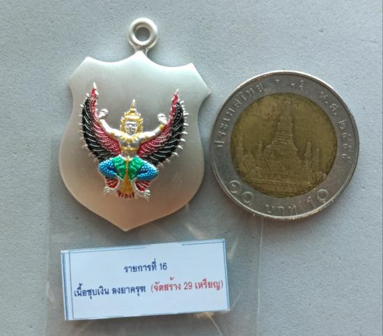 วัดใจเคาะเดียวแดงจ้า เหรียญโล่ห์ครุฑ เนื้อชุบเงินลงยาครุฑ พระอาจารย์ประสูติ วัดในเตา เคาะเดียวแดงจ้า