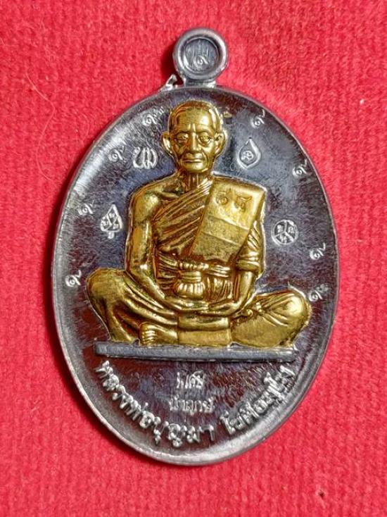 เหรียญหลวงปู่บุญมา โชติธมโม รุ่น สร้างบารมีเจริญพร ที่พักสงฆ์เขาแก้วทอง จ.ปราจีนบุรี ปี 65 เนื้อ ตะกั่วหลังเรียบหน้ากากทองฝาบาตร ตอกโค๊ตรวมโค๊ต มีจาร เคาะเดียวแดง