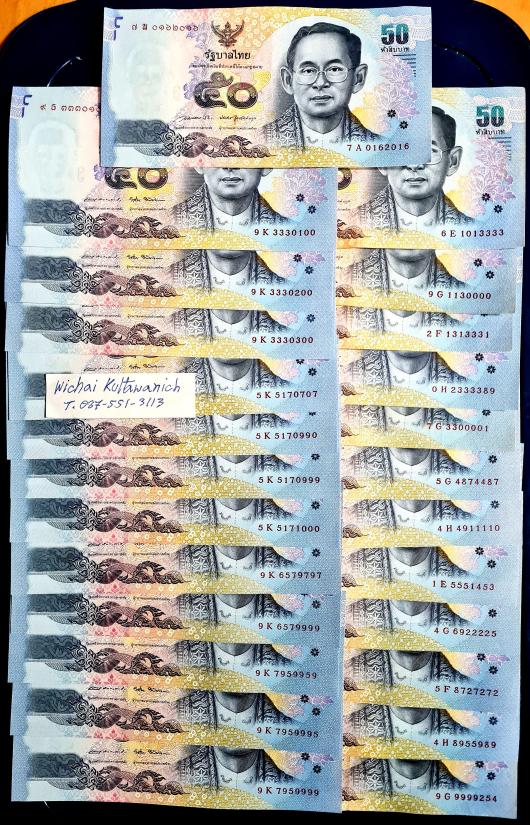 เปิดให้แลก ธนบัตร ร 9 ชนิดราคา 50 บาท แบบ 16 และ 16.5 ผ่านใช้ สถาพสวย เลขสวยๆ ทุกใบ จำนวน 25 ใบ เคาะเดียวค่าส่ง