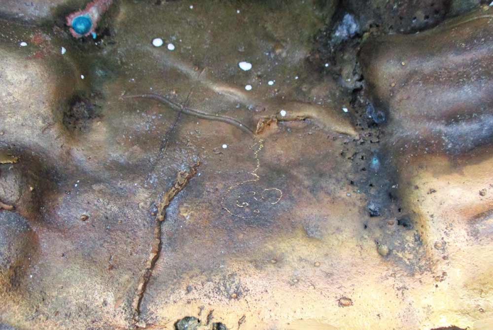 ใต้ฐานหล่อขอบหนาๆ จารยันต์ที่ขอบฐาน อุดปูนปั๊มยันต์หมึก !!