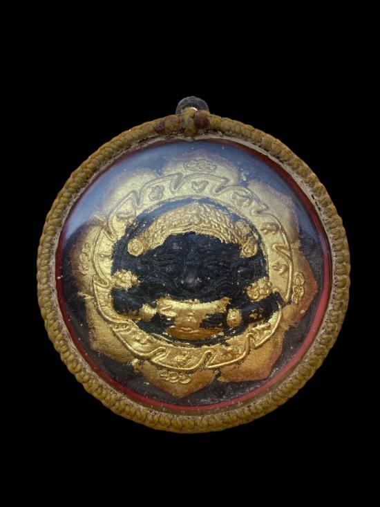 พระจตุคามรามเทพ ลักษณะทรงกลม เลี่ยมพร้อมใช้ หน้าพระเป็นองค์จตุคามประทับนั่ง รายล้อมด้วยอักขระยันต์ รอบองค์ด้านหลังเป็นยันต์จักร ลงทองเดิม สภาพตามภาพ เหมาะสำหรับสายบูชาองค์จตุคาม เน้นพุทธคุณด้านโชคลาภ ความสำเร็จ และการคุ้มครอง