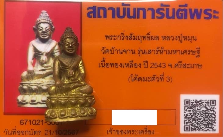 พระกริ่งสัมฤทธิ์ผล หลวงปู่หมุนวัดบ้านจาน รุ่นเสาร์ห้ามหาเศรษฐี เนื้อทองเหลืองปี 2543 องค์จริงสวยมากๆ