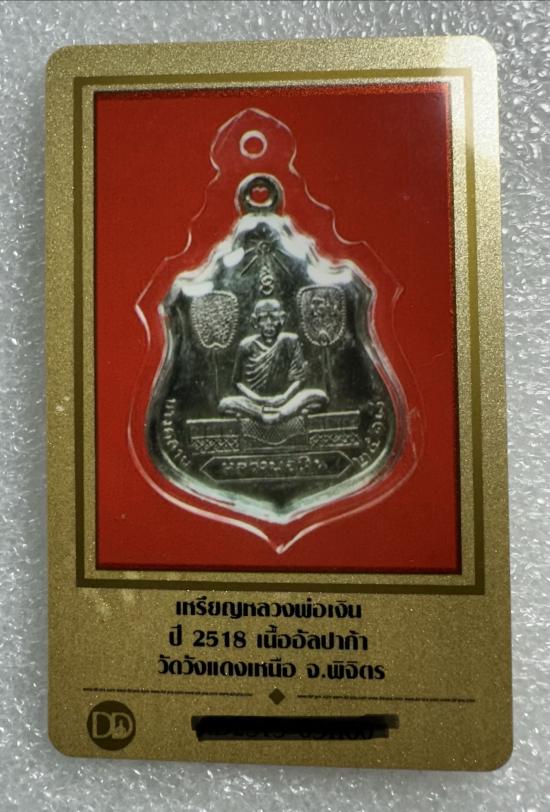 เหรียญหลวงพ่อเงิน เนื้ออัลปาก้า วัดวังแดงเหนือ จ.พิจิตร พ.ศ.2518 พร้อมบัตรเพื่อนบ้านครับ