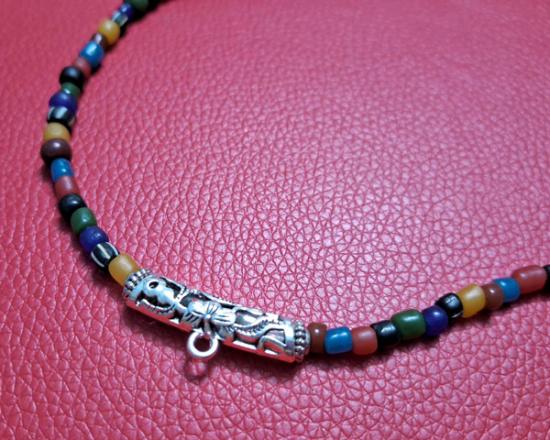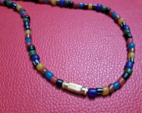 สร้อยคอลูกปัดทราวดี ลูกปัดโบราณสวยๆ ความยาว 24 นิ้ว สวมหัวได้หรือหมุนเกลียวทองเหลืองถอดออกก็ได้ สามารถห้อยพระได้ 1 องค์ (กท.45)