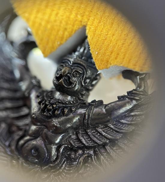 พญาครุฑมหาอำนาจ รุ่นสมปราถนา หลวงปู่โสฬส วัดโคกอู่ทอง เนื้อทองแดงรมดำ ตอกโค้ด หมายเลข 3222 สภาพสวย