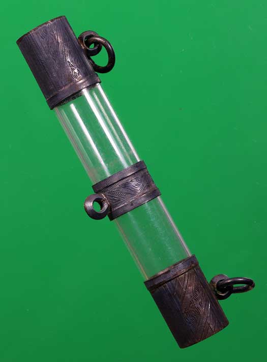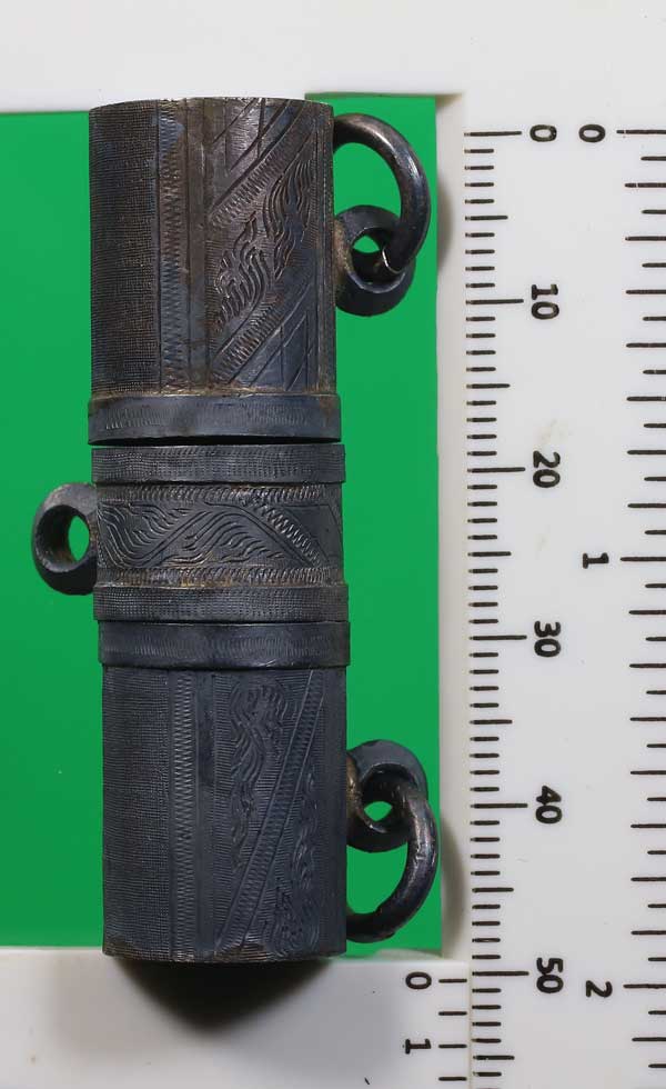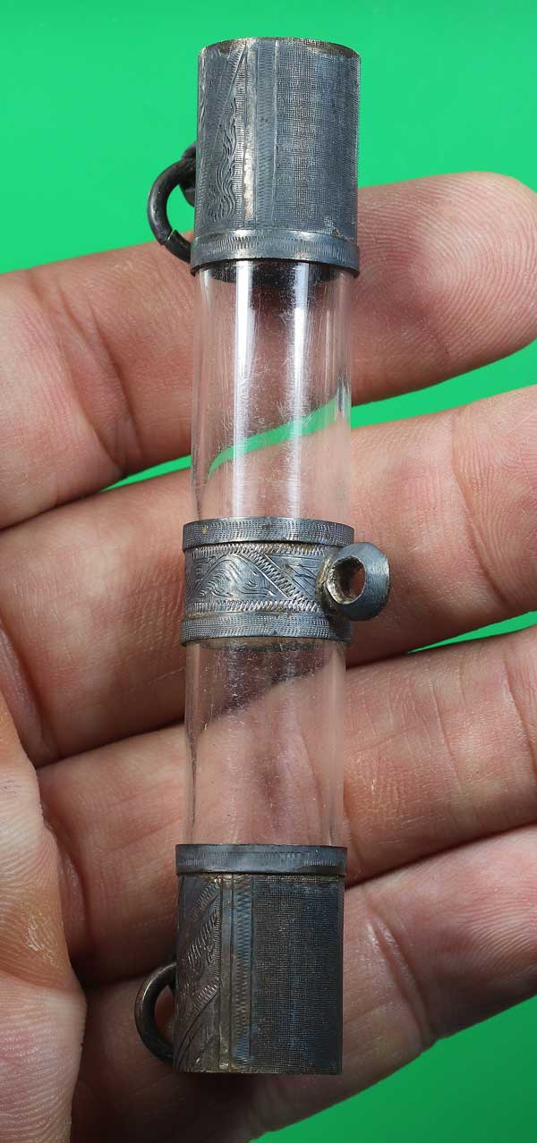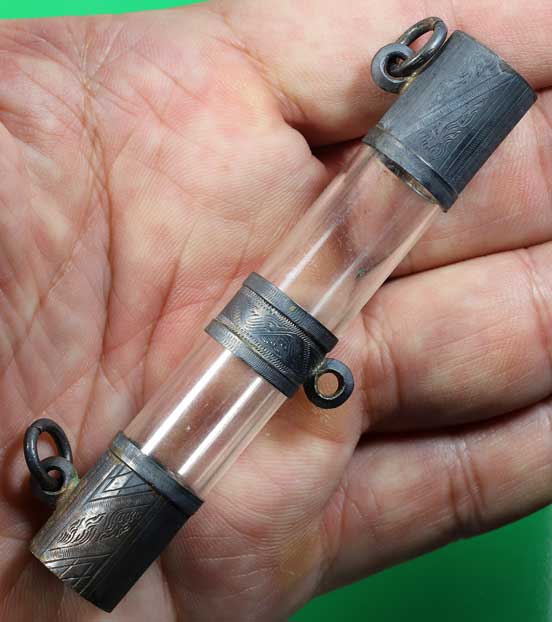 ชื่อพระเครื่อง วัดใจ...ปลอกตะกรุดปิดหัวท้าย 3 ห่วง เนื้อเงินแท้ เก่า (สภาพดี เก่าเก็บ ไม่เคยใช้งาน) ขนาด 14 มม.