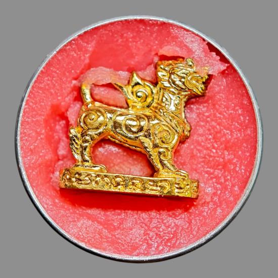 ตลับสีผึ้งว่านพญาไก่แดง บรรจุสิงห์เนื้อทองแดงในตลับ หลวงพ่อวิชัย วัดหัวเด่น ปี 2568 |