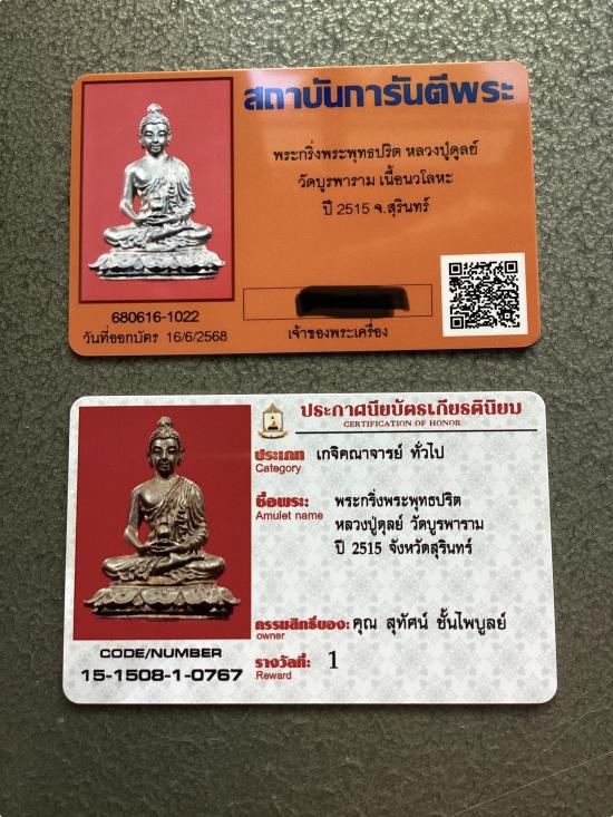 พระกริ่งพุทธปริตร หลวงปู่ดุลย์ อตุโล อดีตเจ้าคณะจังหวัดสุรินทร์ ฝ่ายธรรมยุต เจ้าอาวาสวัดบูรพาราม อ.เมือง จ.สุรินทร์ เป็นหนึ่งในวัตถุมงคลยอดนิยมอันดับต้นๆ ของหลวงปู่ดุลย์ ที่ได้รับการกล่าวขานว่าเป็นพระกริ่งสายกรรมฐานที่มีความงดงามมากที่สุด นับได้ว่าเป็นสุดยอดของพระกริ่งแดนอีสานได้เลย จัดสร้างเมื่อ พ.ศ.๒๕๑๕ โดยคณะกรรมการโรงพยาบาลสุรินทร์ เพื่อหาปัจจัยสร้างตึกสงฆ์อาพาธ ออกแบบและปั้นหุ่นโดยนายช่างปั้นพระระดับครู "ช่างเกษม มงคลเจริญ" เน้นออกแบบให้เหมือนพระพุทธเจ้ามากที่สุดซึ่งส่วนใหญ่แล้วจะเป็นแบบจีน พระพุทธลักษณะเป็นศิลปะคันธารราฐประยุกต์ พระพักตร์เหมือนมนุษย์มาก พระศกมวยเป็นเส้น เส้นจีวรริ้วพลิ้วไหว ประทับบนบัลลังก์บัวคว่ำ จารึกหัวใจพระปริตรตรงกลีบบัวด้านหน้า "สะ ยะ สะ" ส่วนด้านหลัง "ปุ ยะ อะ จะ" ชนวนศักดิ์สิทธิ์ที่นำมาหล่อหลอม เช่น ชนวนกริ่งนวหรคุณ ชนวนกริ่งนเรศวร ปี 07 และกริ่งนเรศวรเมืองงาย ชนวนพระกริ่งวิชิตมาร ทั้งชนวนกริ่งจอมสุรินทร์ พระยันต์จารโดยพระสายกรรมฐานทั้งหมด ผสมสูตรโดย อ.ไสว สุมโน หลวงปู่ดุลย์เป็นประธานพิธีปลุกเสก โดยพระเถระที่เข้าร่วมอธิษฐานจิต อาทิ หลวงปู่ฝั้น, หลวงปู่สาม พระอาจารย์วัน พระอาจารย์จวน, พระอาจารย์อ่อน และครูบาอาจารย์สายกรรมฐาน รวมทั้งเกจิอาจารย์ดังๆ ในยุคนั้น เช่น พระอาจารย์นำ วัดดอนศาลา หลวงปู่โต๊ะ วัดประดู่ฉิมพลี หลวงพ่อทบ วัดพระพุทธบาทชนแดน หลวงปู่ทิม วัดละหารไร่ หลวงพ่อเงิน วัดดอนยายหอม หลวงพ่อเกษม สุสานไตรลักษณ์ ฯลฯ ซึ่งเป็นชุดเดียวกับที่ปลุกเสกพระกริ่งจอมสุรินทร์ ในพิธีอธิษฐานจิตพระสงฆ์ได้สวดบทพระปริตรหลายบท ซึ่งสามารถขับไล่สิ่งอัปมงคลทั้งหลาย ป้องกันภัยพิบัติ บาปเคราะห์ โรคภัยไข้เจ็บ และนำมาสู่ความสุข สวัสดีมีชัย เจริญด้วยเมตตาบารมี อายุวรรณะ ลาภผลทุกประการ โดยพิธีครั้งนั้นพระอาจารย์ฝั้นถึงกับกล่าวว่า "แค่หลวงปู่ดุลย์องค์เดียวก็เกินพอแล้ว" องค์นี้หล่อสวยติดชัด. ปลายจมูกโด่งครับยังมีพระเครื่องสวยๆอีกหลายรายการ กดดูที่ฆ้อนได้เลยครับ