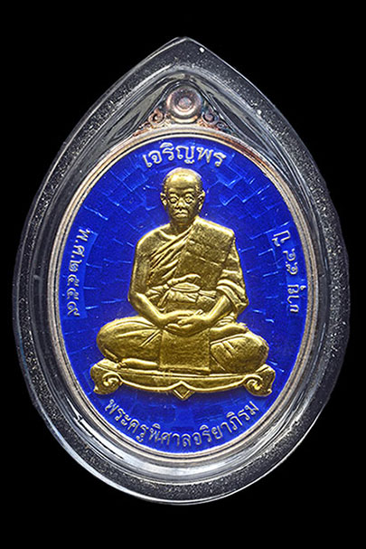 เหรียญเจริญพร เนื้อเงินหน้าทองคำ หมายเลขสุดสวยหลักเดียว ๖ หลวงพ่อพระมหาสุรศักดิ์ วัดประดู่ พระอารามหลวง สวยๆ เลี่ยมรักษาผิวแล้ว กล่องเดิม ปี 2559