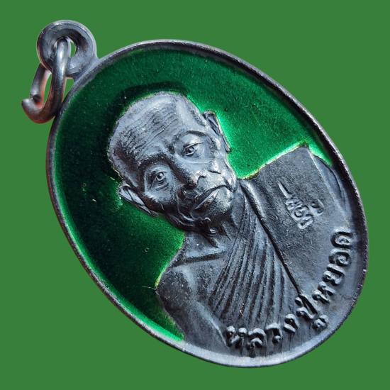 เหรียญเงินลงยา หลวงพ่อหยอด วัดแก้วเจริญ พ.ศ.2534 สภาพสวยตามรูป