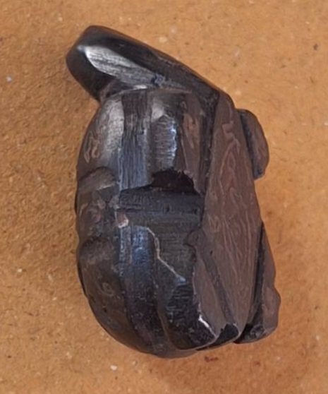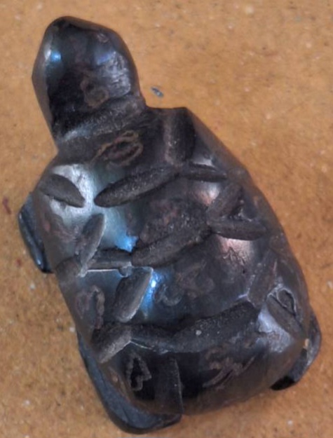 แร่เหล็กน้ำพี้ แกะสลักเปนเต่า มีจารยันต์ ขนาดหัวหาง 1นิ้ว ไม่ทราบที่