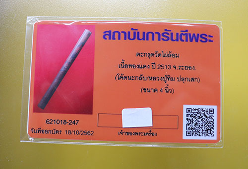 ชื่อพระเครื่อง "เคาะเดียว" ตะกรุดทองแดง 4 นิ้ว หลวงปู่ทิม วัดละหารไร่ปลุกเสก ออกวัดไผ่ล้อม ปี 2513 สวยๆ พร้อมบัตรG-pra #4