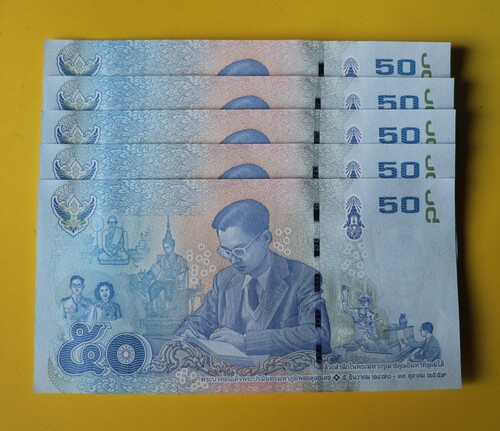 ธนบัตรแบงค์ 50 บาท แบบ 16 และแบบ 16.5 อย่างละ 5 ฉบับ unc