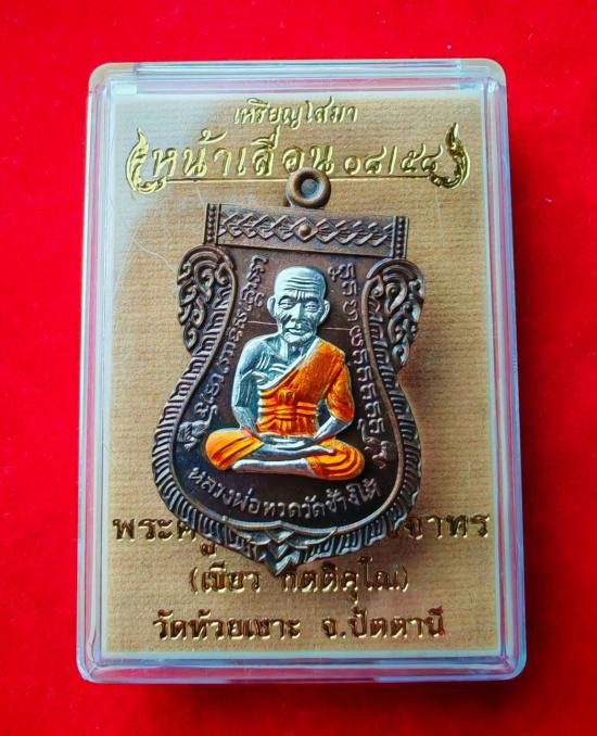 เหรียญเสมาหน้าเลื่อน 08/58 พ่อท่านเขียว วัดห้วยเงาะ ปัตตานี เนื้อชนวน ลงยาจีวร #73 พร้อมกล่องเดิมจากวัด |