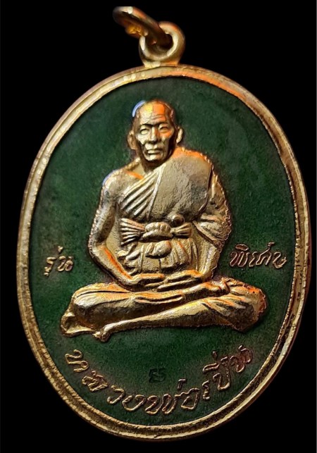 เหรียญย้อนยุค ปี 38 เนื้อกะไหล่ทองลงยาเขียว ตอกโค๊ต หลวงพ่อเปิ่น วัดบางพระ สภาพสวย