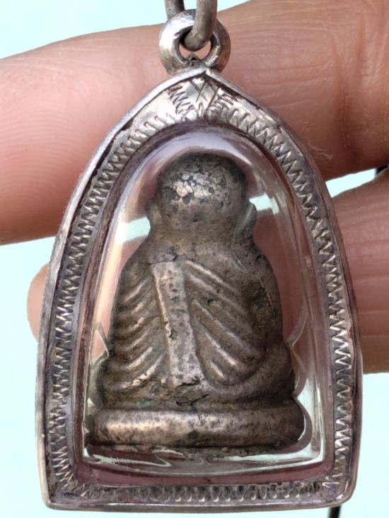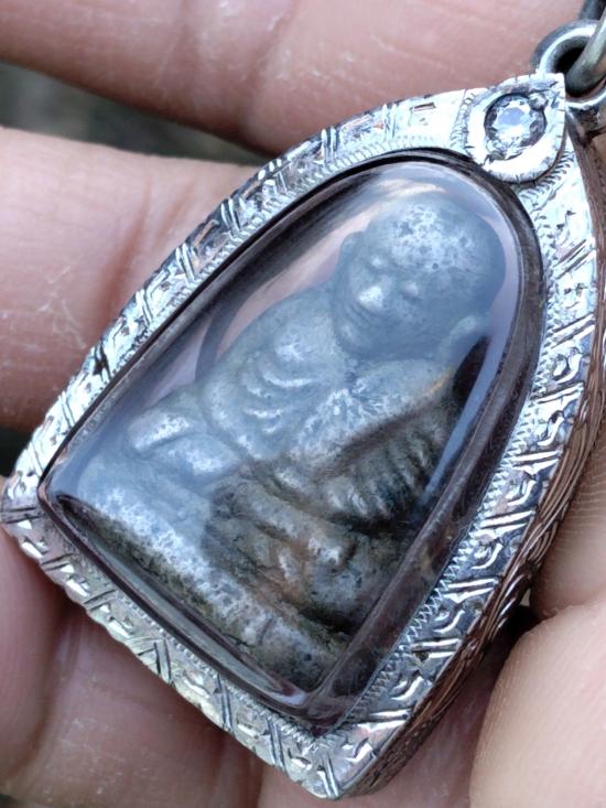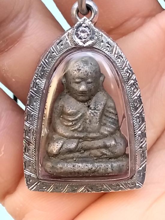 รูปหล่อหลวงพ่อเงินรุ่นปืนแตก เศียรกลมพิมพ์กลางเนื้อเงินเลี่ยมกรอบเงินฝังเพชรครับ