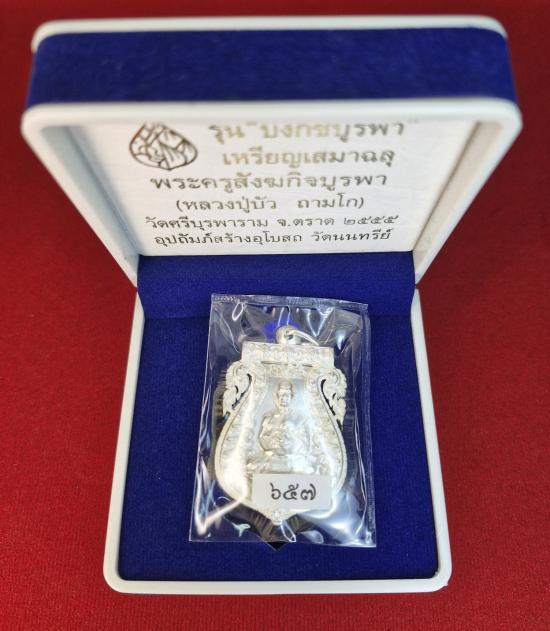 เหรียญเสมาฉลุ หลวงปู่บัว บงกชบูรพา เนื้อเงิน หมายเลข657