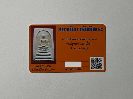 พระสมเด็จไตรมาสหลวงพ่อแพ วัดพิกุลทอง จ.สิงห์บุรี ปี 2509 พิมพ์ใหญ่ฐานบัว พร้อมบัตรรับรอง G