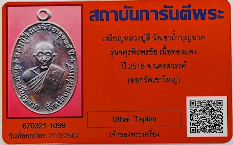 ชื่อพระเครื่อง เหรียญจตุรพิธพรชัย หลวงปู่สี ฉันทสิริ วัดเขาถ้ำบุญนาค 2518