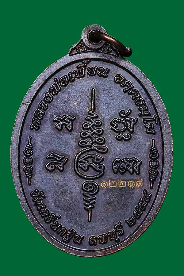 วัดใจเคาะเดียวแดง เหรียญในภาพคือเหรียญหลวงพ่อเพี้ยน รุ่นเจริญพร (บน) ที่ระลึกครบ 7 รอบ ปี 2554 วัดเกริ่นกฐิน ลพบุรี