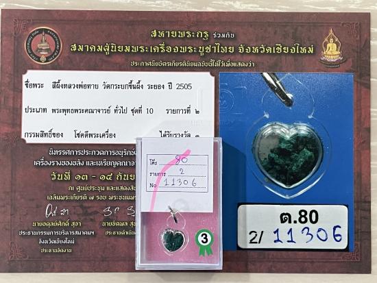 (เคาะแดง1900) +ติดที่3สมาคม สีผึ้งเขียว หลวงพ่อทาบ วัดกระบกขึ้นผึ้ง