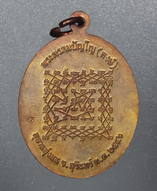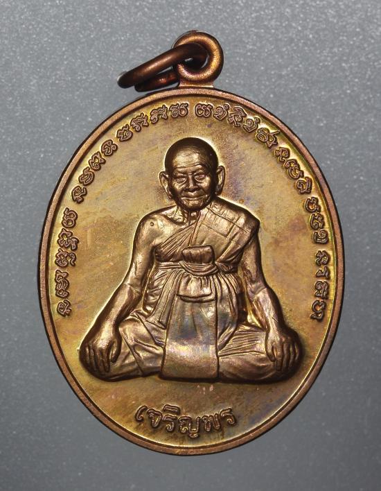 เหรียญเจริญพร หลังยันต์เกราะเพชร หลวงปู่หงษ์ วัดเพชรบุรี จ.สุรินทร์ เนื้อทองแดง ปี 2556 |