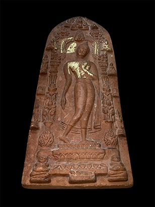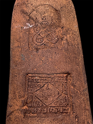 พระลีลากำแพงศอก หลังยันต์ เนื้อดินเผา สวยๆ(ไม่ทราบที่)