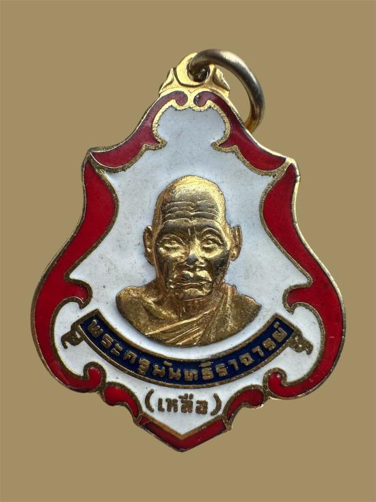 เหรียญหลวงพ่อเหลือ วัดสาวชะโงก ปี 2519 เนื้อกะไหล่ทองลงยา