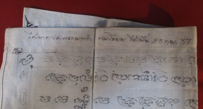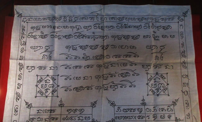 ผ้ายันต์ ไม่ทราบที่ จารยันต์ด้วยมือ ครับ (พระบ้าน ครับ)