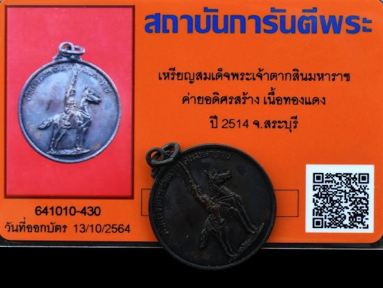 เหรียญสมเด็จพระเจ้าตากสินมหาราช ค่ายอดิศรสร้าง เนื้อทองแดง ปี 2514 จ.สระบุรี พระดี พิธีใหญ่ + บัตรรับรองพระแท้การันตีพระ สภาพพระตามรูปที่ลงทุกประการ