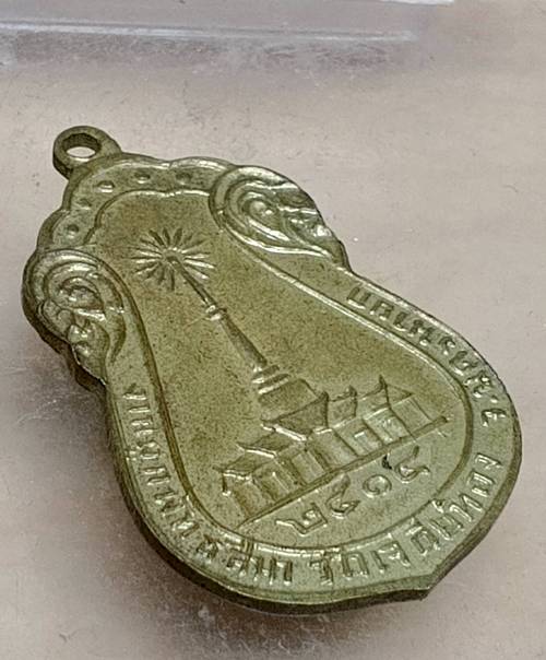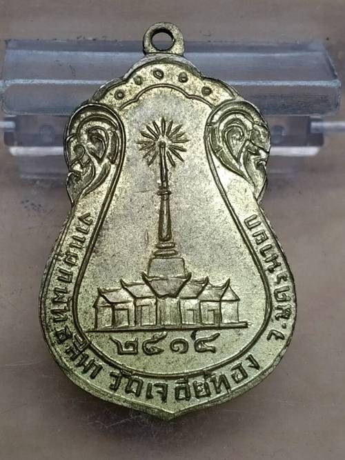 พระพุทธศักสิทธิ์ ประจำวัด ที่เป็นที่ศรัทธา แก่ชาวบ้าน ทางวัดจัดสร้างเหรียญขึ้นเมื่อปี 2514 งานผูกพัทธสีมา วัดเจดีย์ทอง เนื้อทองฝาบาตรกะไหล่ทอง รุ่นแรก