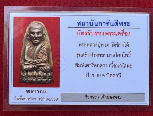 หลวงปู่ทวด วัดช้างให้ หลังเตารีด พิมพ์กลาง เนื้อนวะโลหะ รุ่นสร้างโรงพยาบาลโคกโพธิ์ ปี 2539 พร้อมบัตรรับรอง 88167988